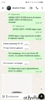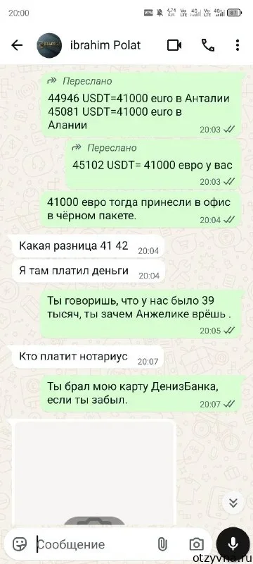 Январь 2024 года — теперь дальше речь будет идти уже не про Ибрагима, а про его брата Омера Полат и его жена Алжелика Полат. Они заявляют, что «готовы помочь». Предлагают выкупить машину в рассрочку за 40 000 евро, что, меня, конечно, устроило после стольких месяцев ожиданий, как говорится «дай Бох просто вернуть обратно, что отдал». Подписываем договор, который отправляют в виде фотки. Договор на Омера Полата. При этом Анжелика предлагала курс зафиксировать на тот момент в рублях, чтобы платить рублями, я сказал, что и в Евро пойдёт, как бы курс потом не был, они, видимо, боялись, что курс вообще взлетит, хотя какая разница, евро и в Африке евро.. Машину они забирают сразу. При этом не копейки денег не дают, но об этом было договорено сразу.